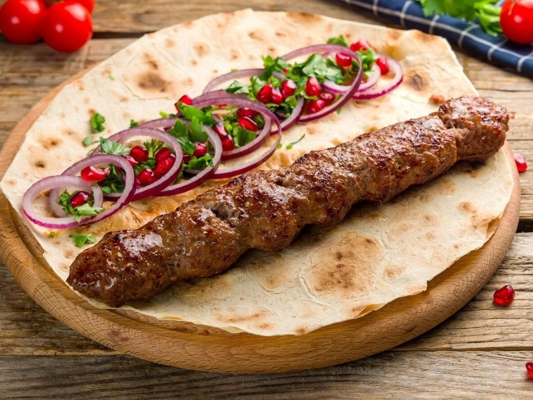 Сочный люля-кебаб приготовленный из измельченной баранины на углях
