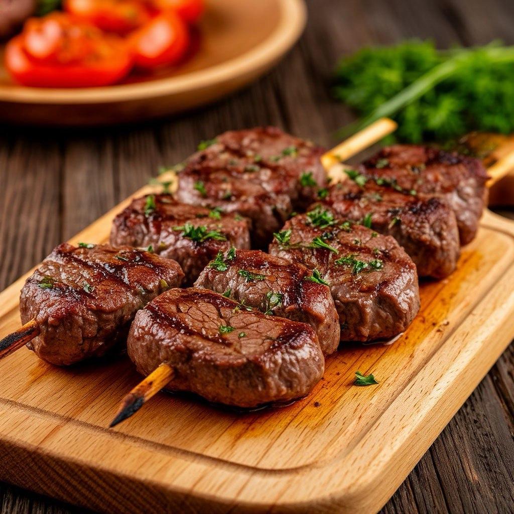 Сочная мякоть барашка на углях на тонком лаваше с фирменным луком с зеленью
