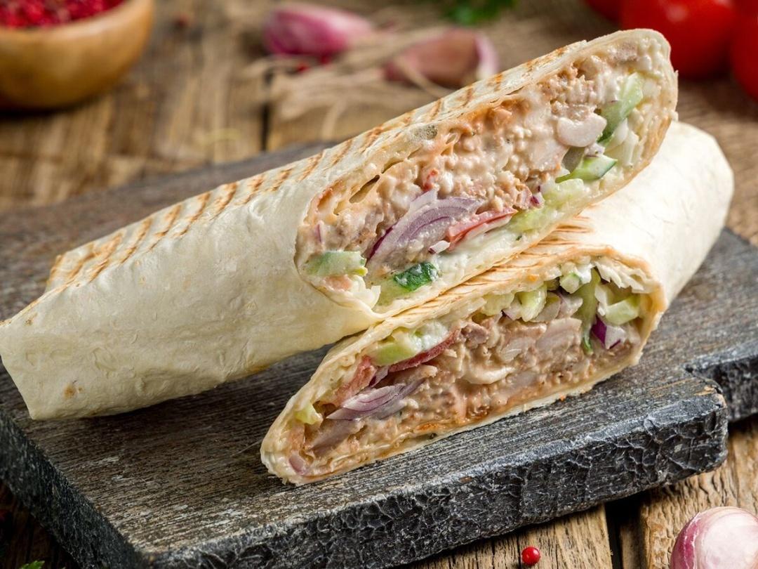 Классическая шаверма с приготовленным на углях мясом и чуть хрустящим лавашом