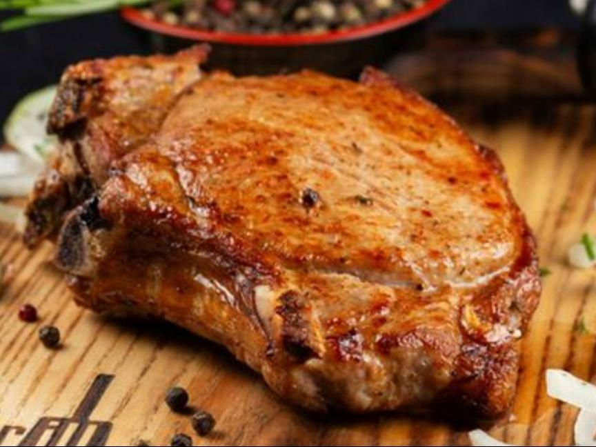 Сочное мясо на косточке на тонком лаваше с фирменным луком